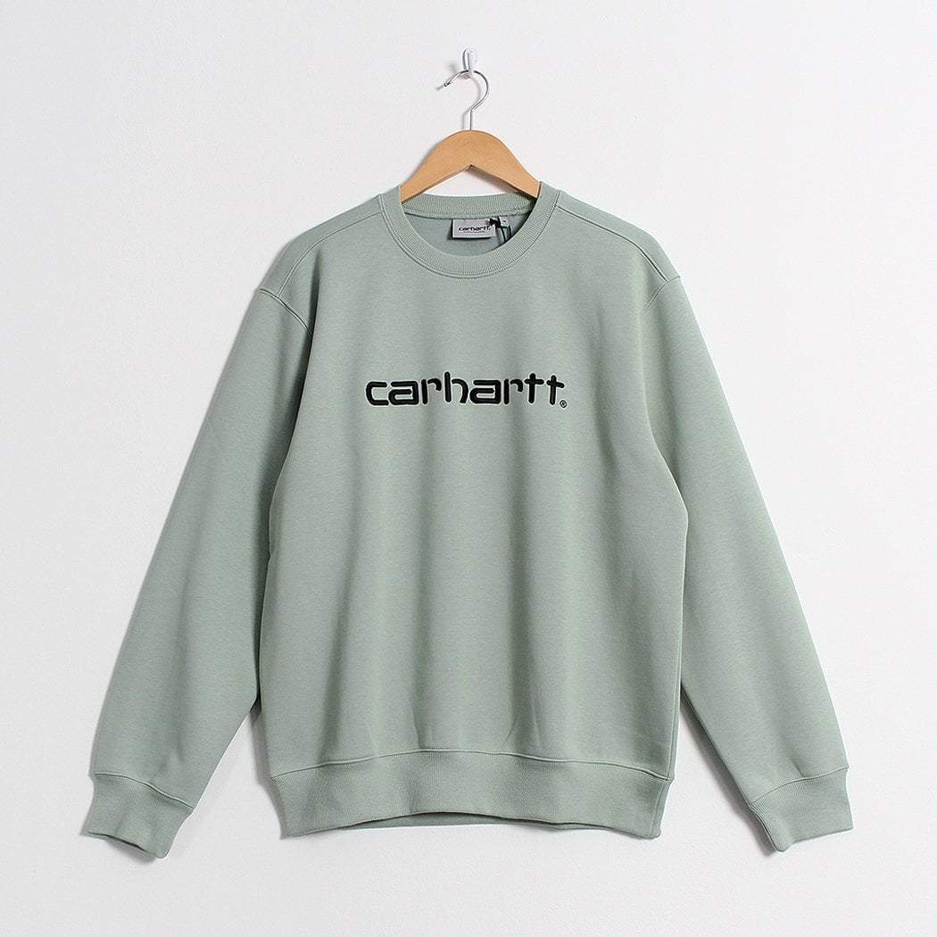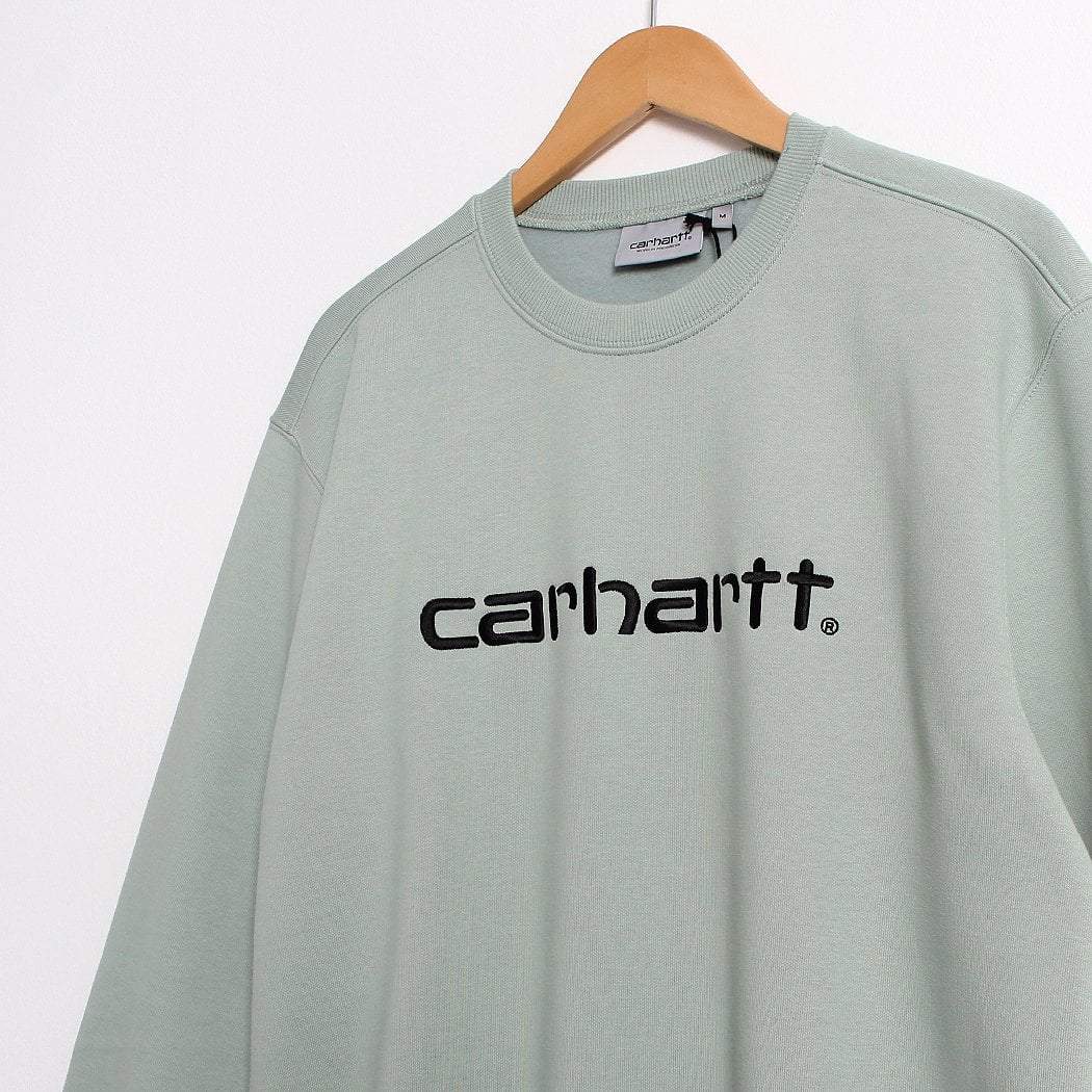 The Carhartt WIP Carhartt Crewneck Sweatshirt in Frosted Green, perfect for wear throughout the seasons.