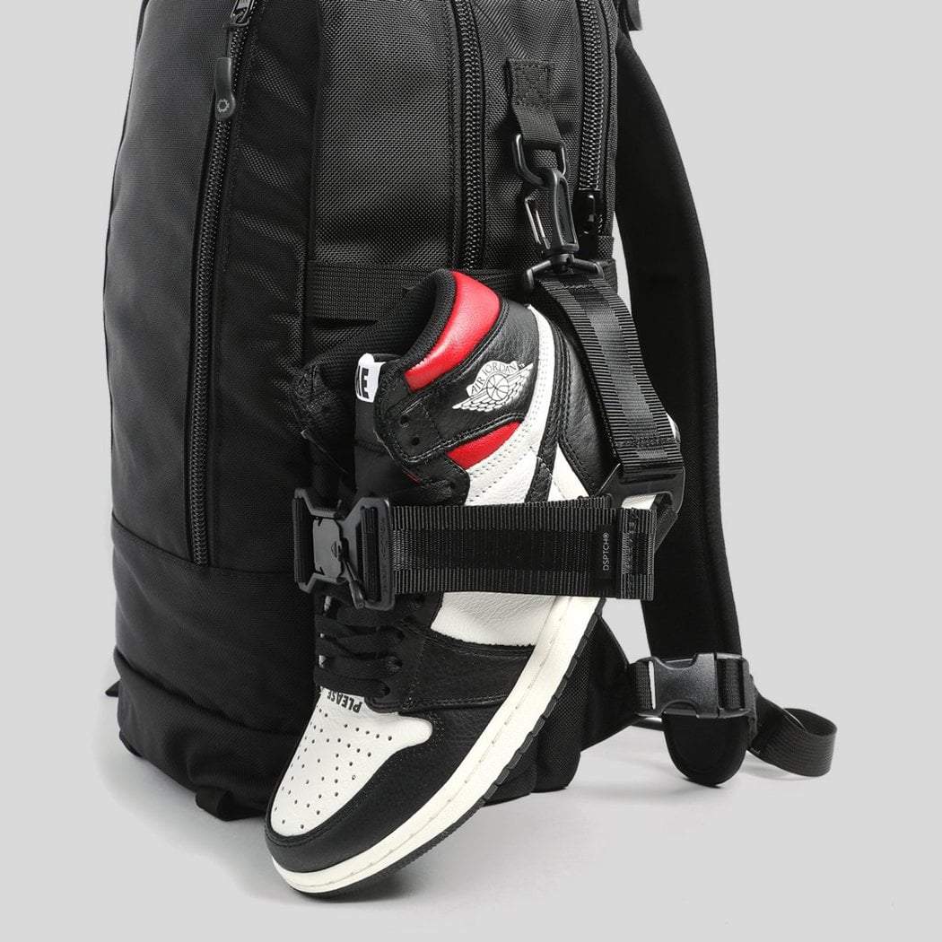 The DSPTCH Shoe Straps are designed to clip on to the outside of your pack and allow you to securely attach footwear for transportation. Eliminating the need for your shoes to take up interior space or tie them to the outside of your bag using the laces.